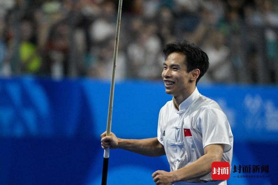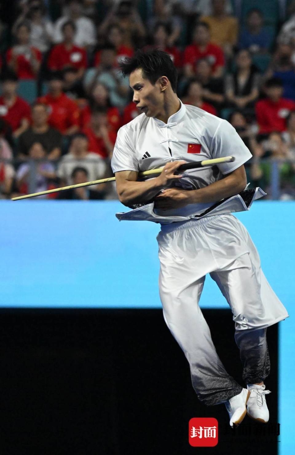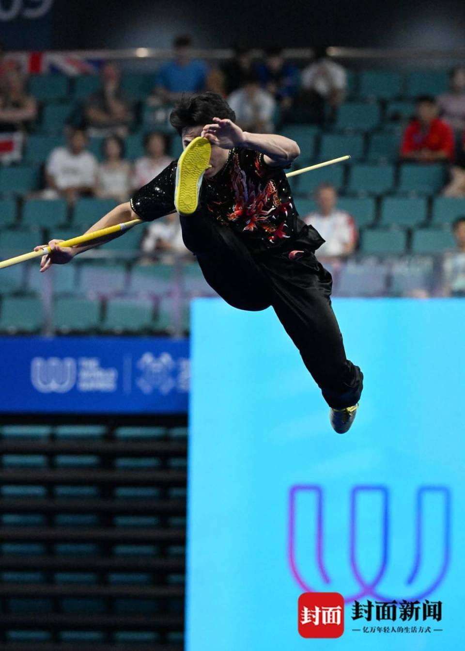 8月9日晚,成都世运会武术项目的长拳-刀术-棍术全能男子棍术决赛举行。来自中国体育代表团的四川籍运动员高久尚,在家门口主场作战,力压群雄夺得金牌。